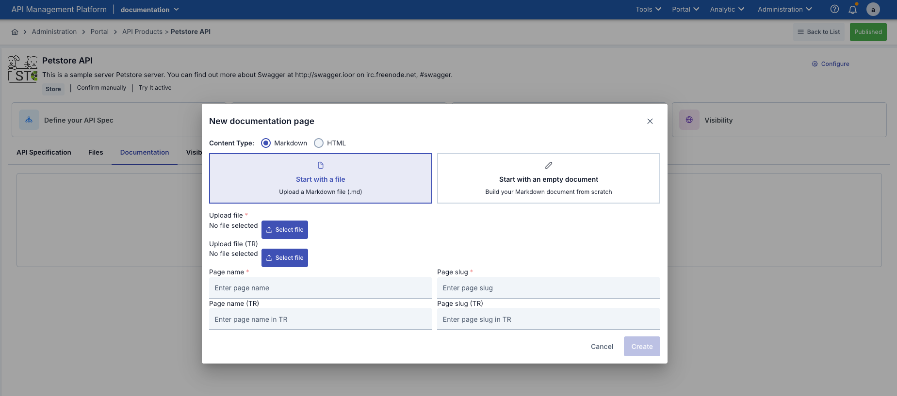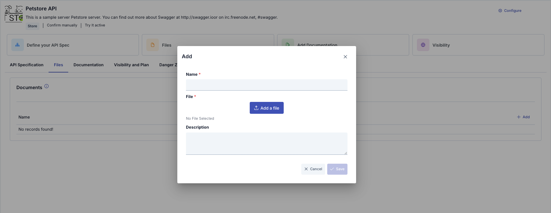 - API Specification Source: Where the spec will be obtained (automatically from the API or manual upload)
