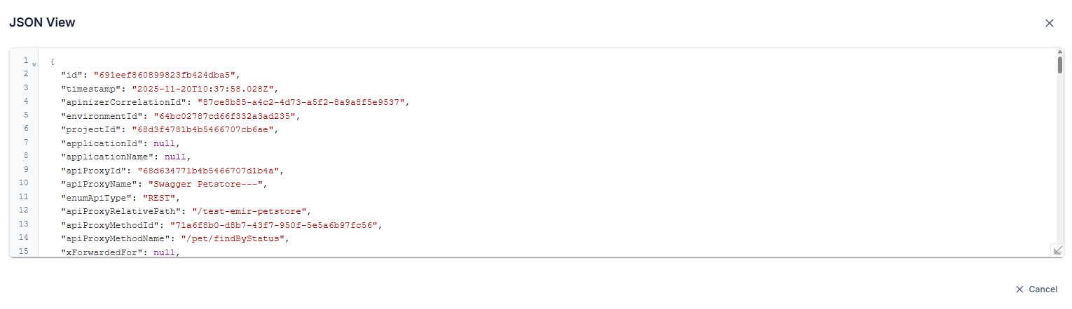 Adım Adım İzleme modu aktifleştirildiğinde API Proxy için saklanan log kayıtlarının içeriği, detaylı incelemeye izin verecek şekilde genişletilir ve mod durdurulana ya da 5 dakika sonunda platform tarafından otomatik olarak kapatılana kadar bu şekilde saklanmaya devam eder.
