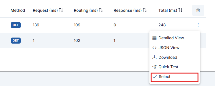 Apinizer'in adım adım izleme modundayken API Proxy için işletilen politikalara ilişkin tuttuğu ayrıntılı log kayıtlarını görüntülemek için Seç (Select) tuşuna tıklanır.