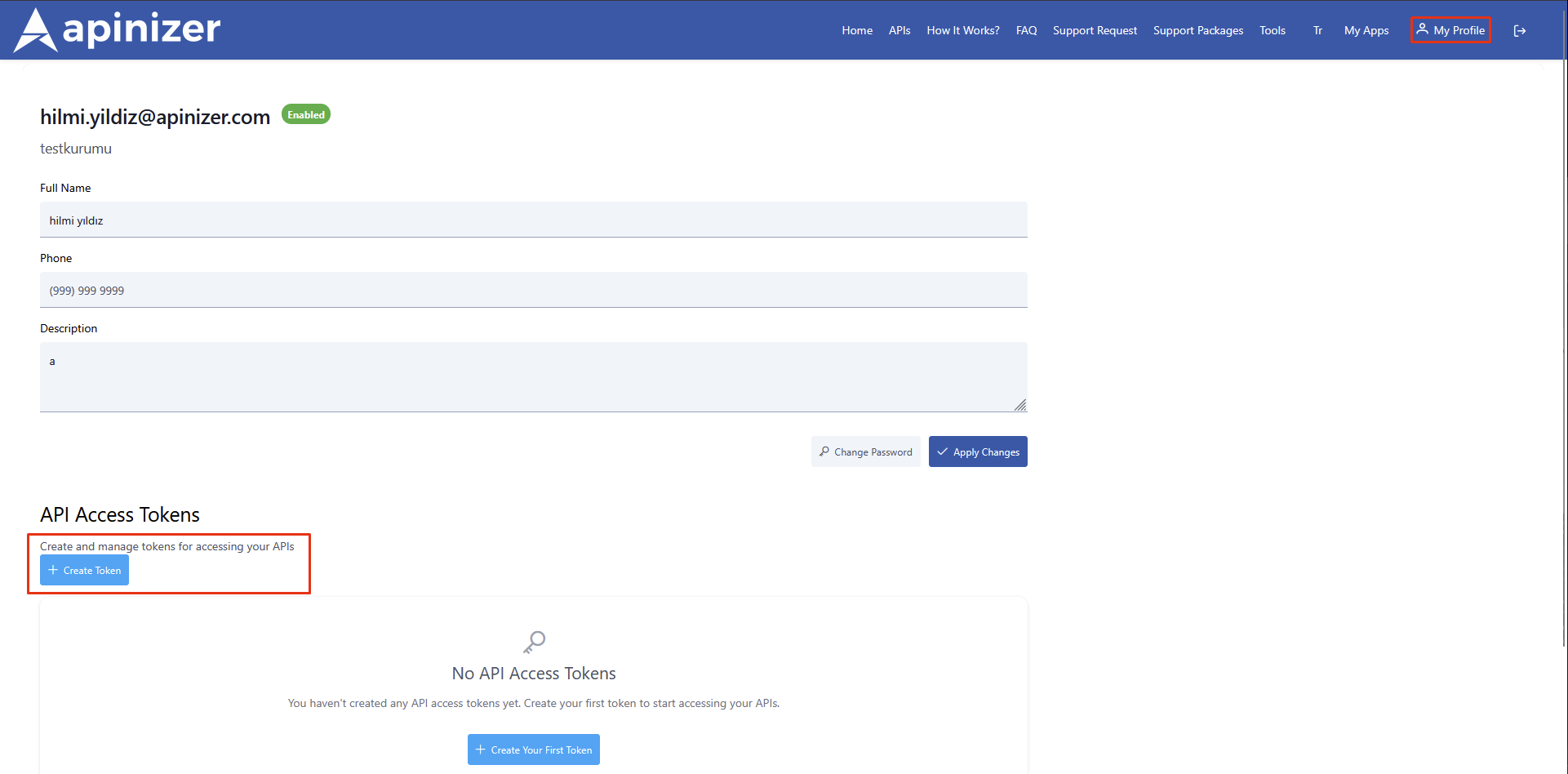 -Apinizer API portaline bağlantım çalışıyor mu?