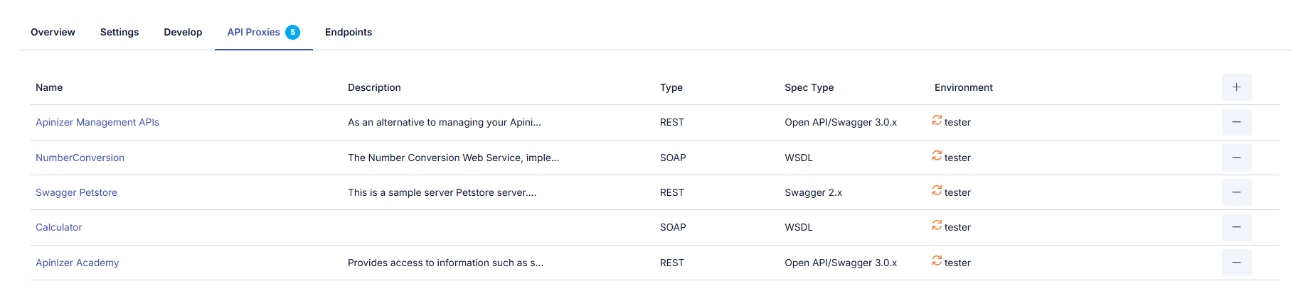 API Proxy'ler Sekmesi (API Proxies Tab)