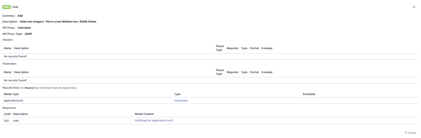SOAP tipindeki API Proxy'nin bir metot/endpoint'ine erişim