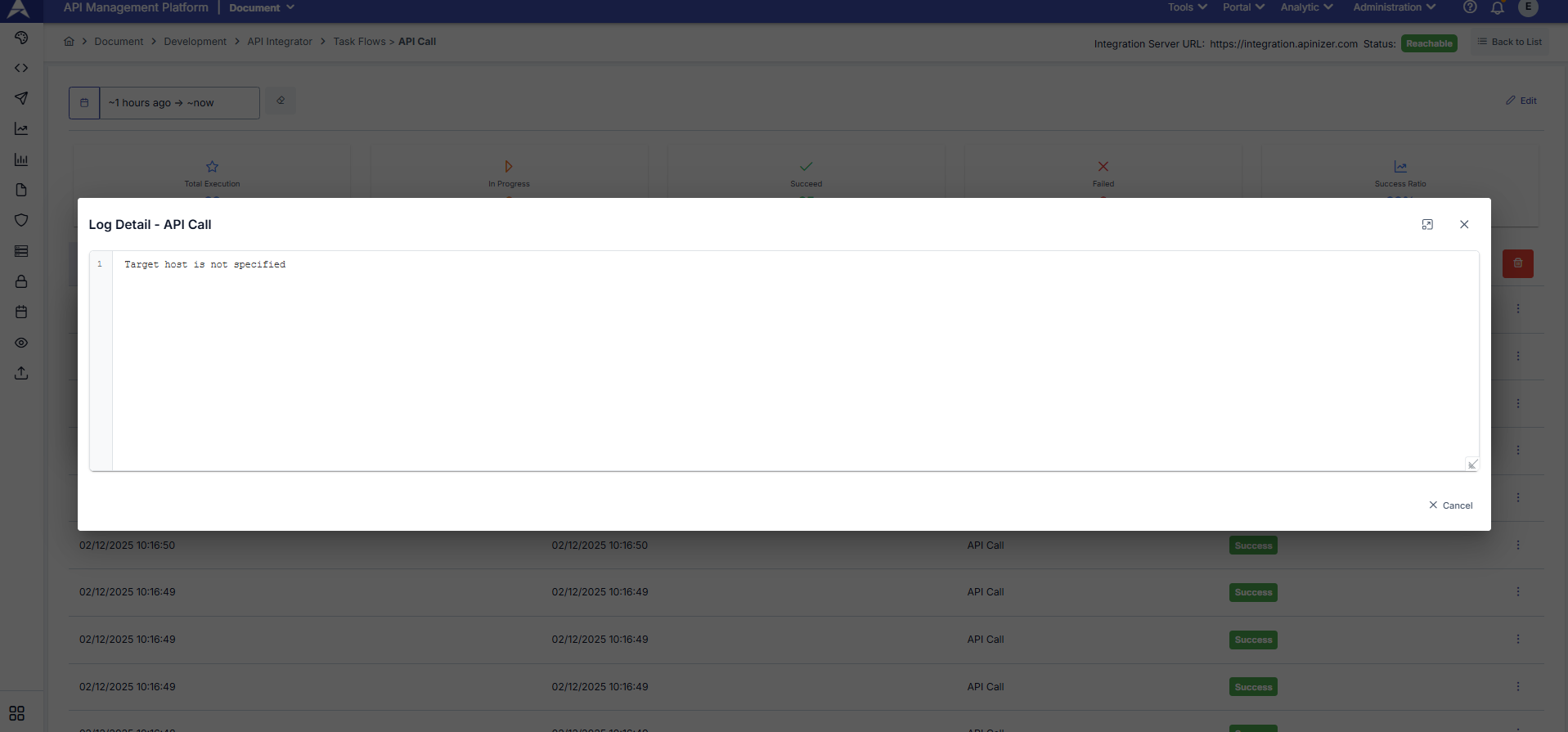 Akışta çalıştırılan görevlerin log bilgilerini içeren dialog görseline aşağıda yer verilmiştir: