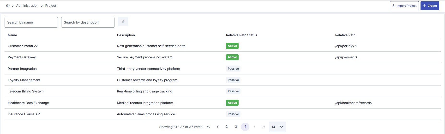 Apinizer'da bulunan bütün projeler, Yönetim → Projeler ekranından görüntülenebilir veya yeni bir proje oluşturulabilir.