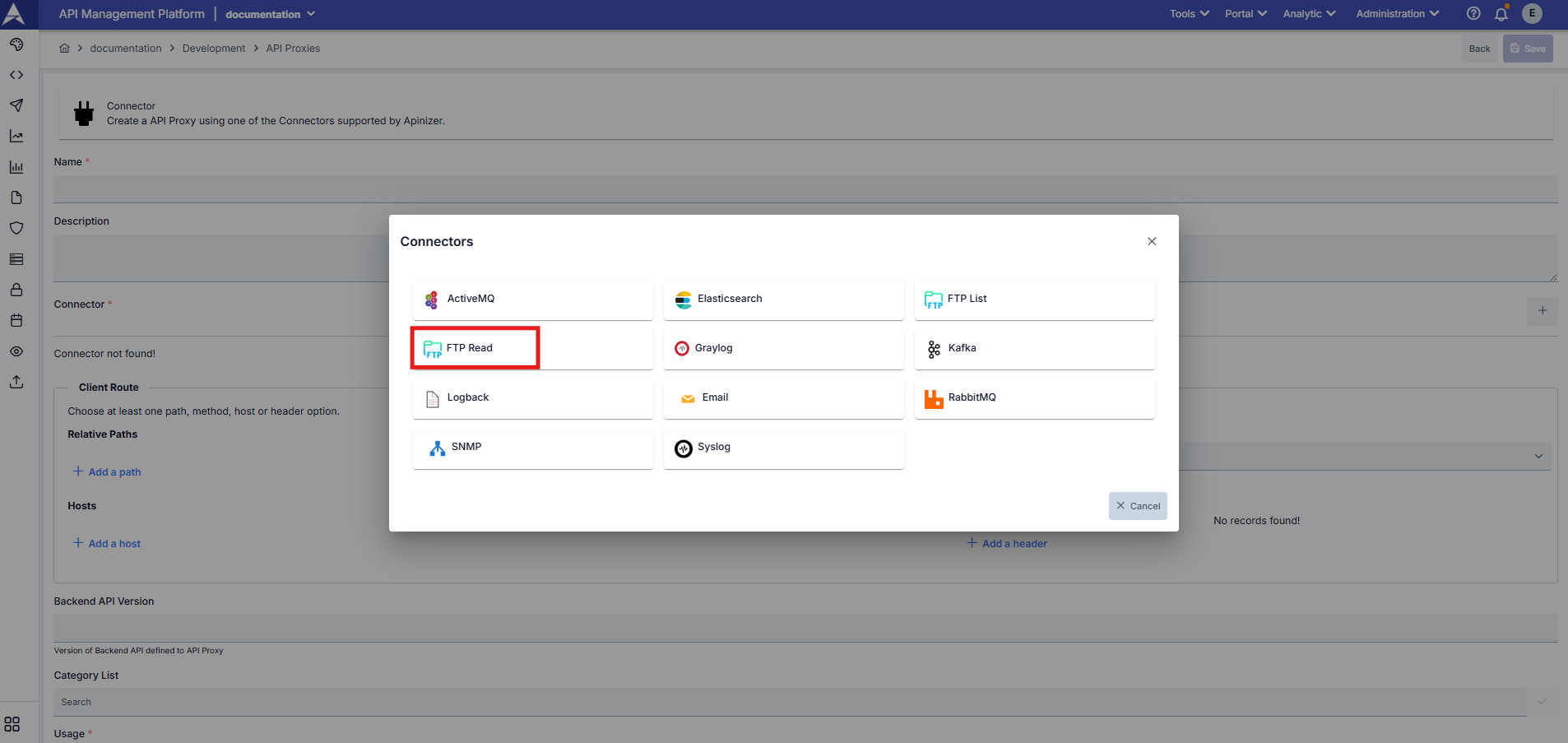 With the FTP file reading connector, you can search for and read files on your servers or in different environments according to specific criteria, retrieve their contents in specific output formats, and create API Proxies that perform these operations and return results.