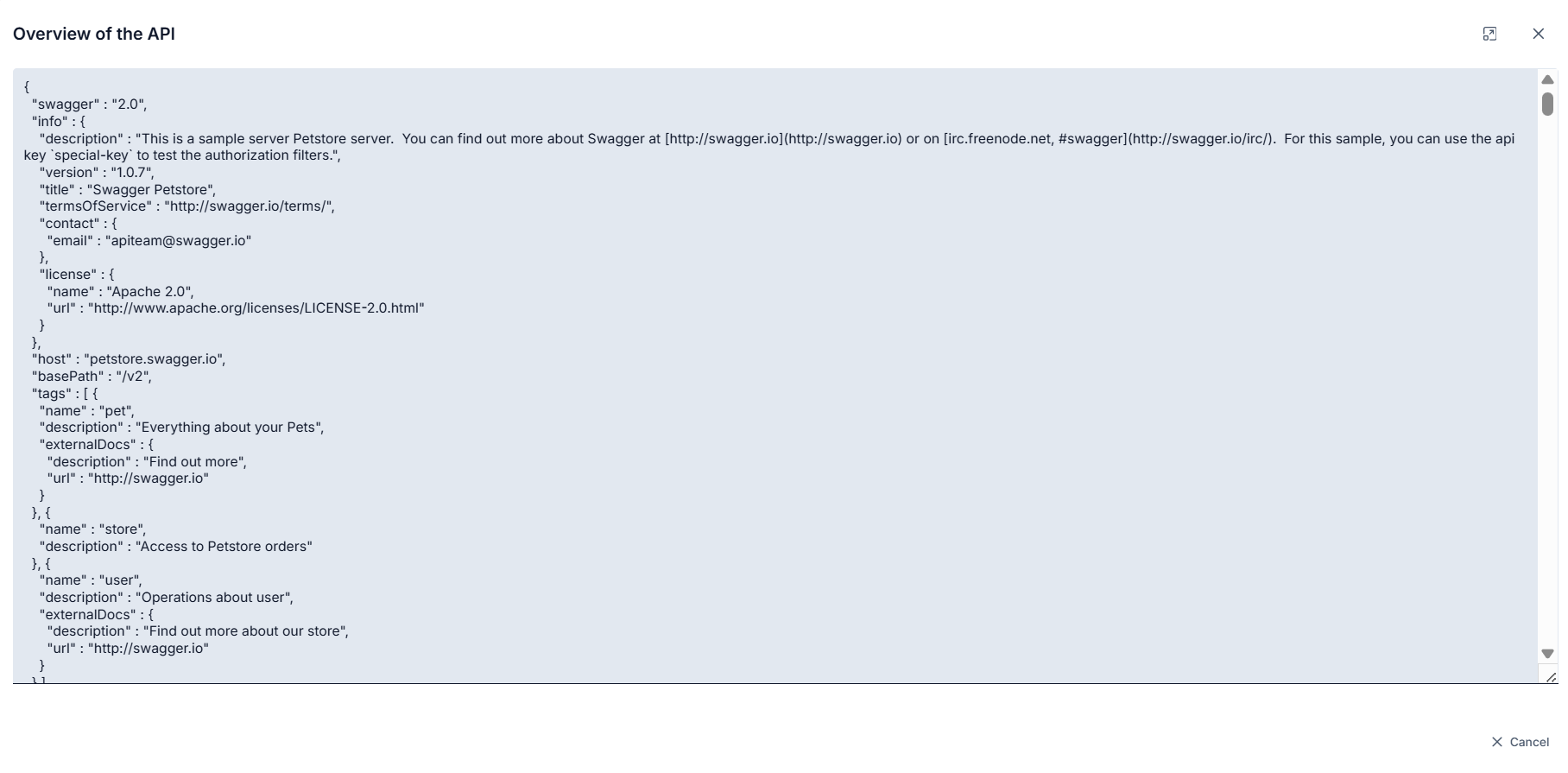 When the API link in the Backend API box is clicked, the Backend API's API Definition Document is displayed.