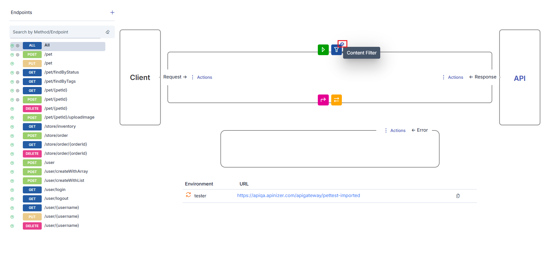 If a specific method/endpoint of the API Proxy is not selected (or if "All" is selected), 2 regions appear as shown in the image below.