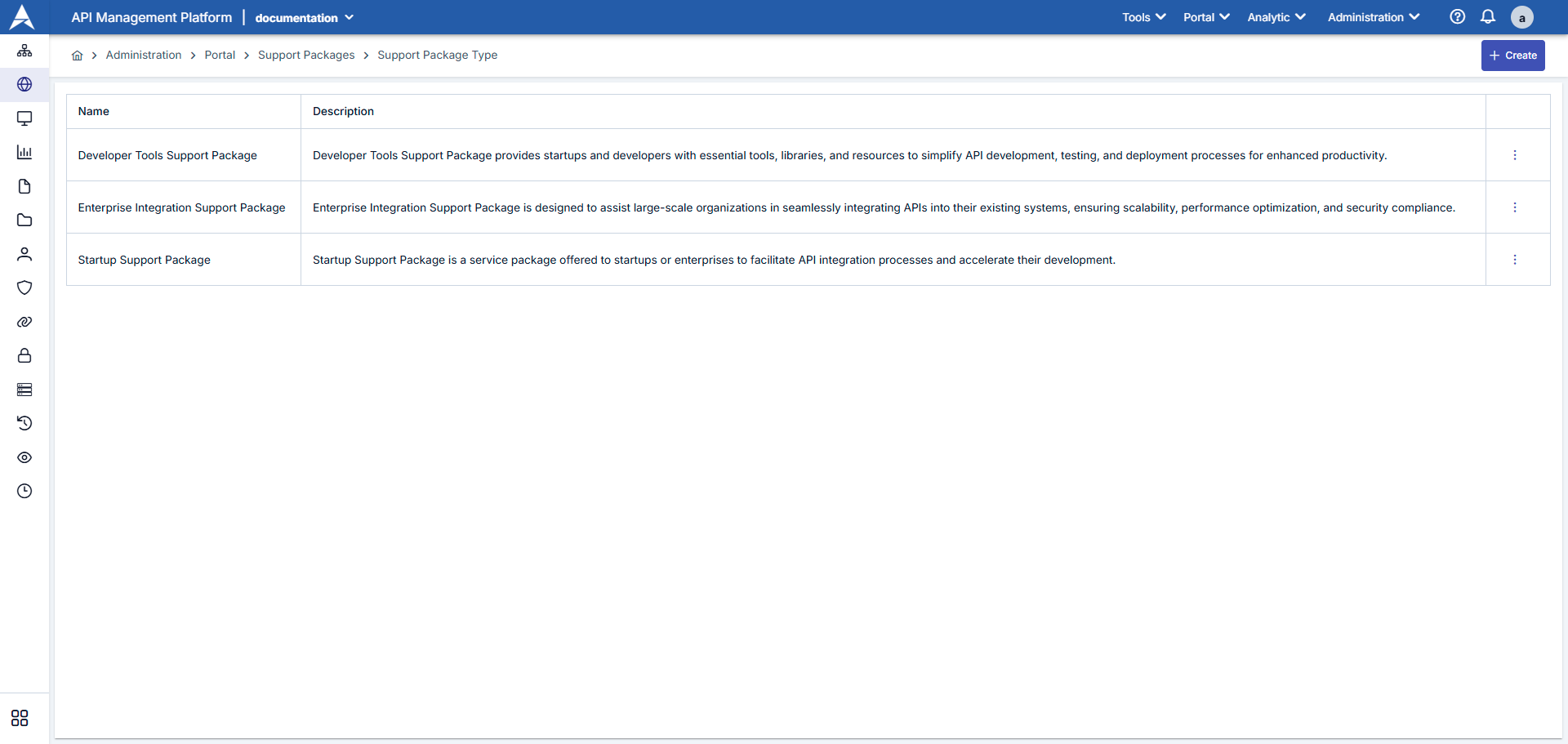 The categories defined on the Support Package Type page (Developer Tools, Enterprise Integration, Startup, etc.) are presented as a selection list in the “Support Packages” section when creating a new support package. You can categorize your packages by creating multiple types as needed. For information on using the Support Packages page, refer to the Support Packages documentation.