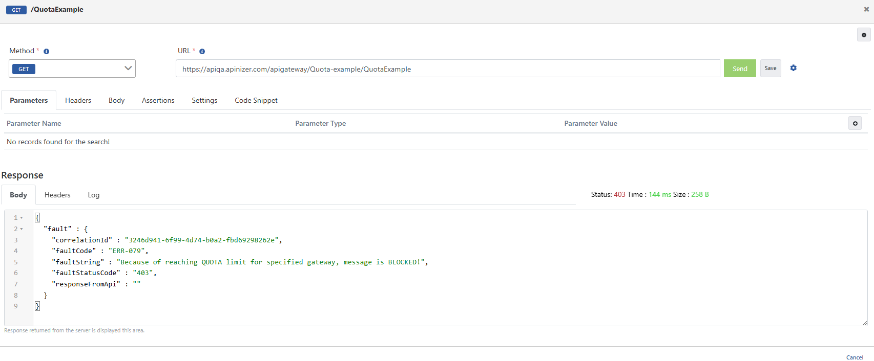 | Permitted Message Count | İzin verilen istek sayısıdır. Bu senaryoda 100 olarak belirledik. |